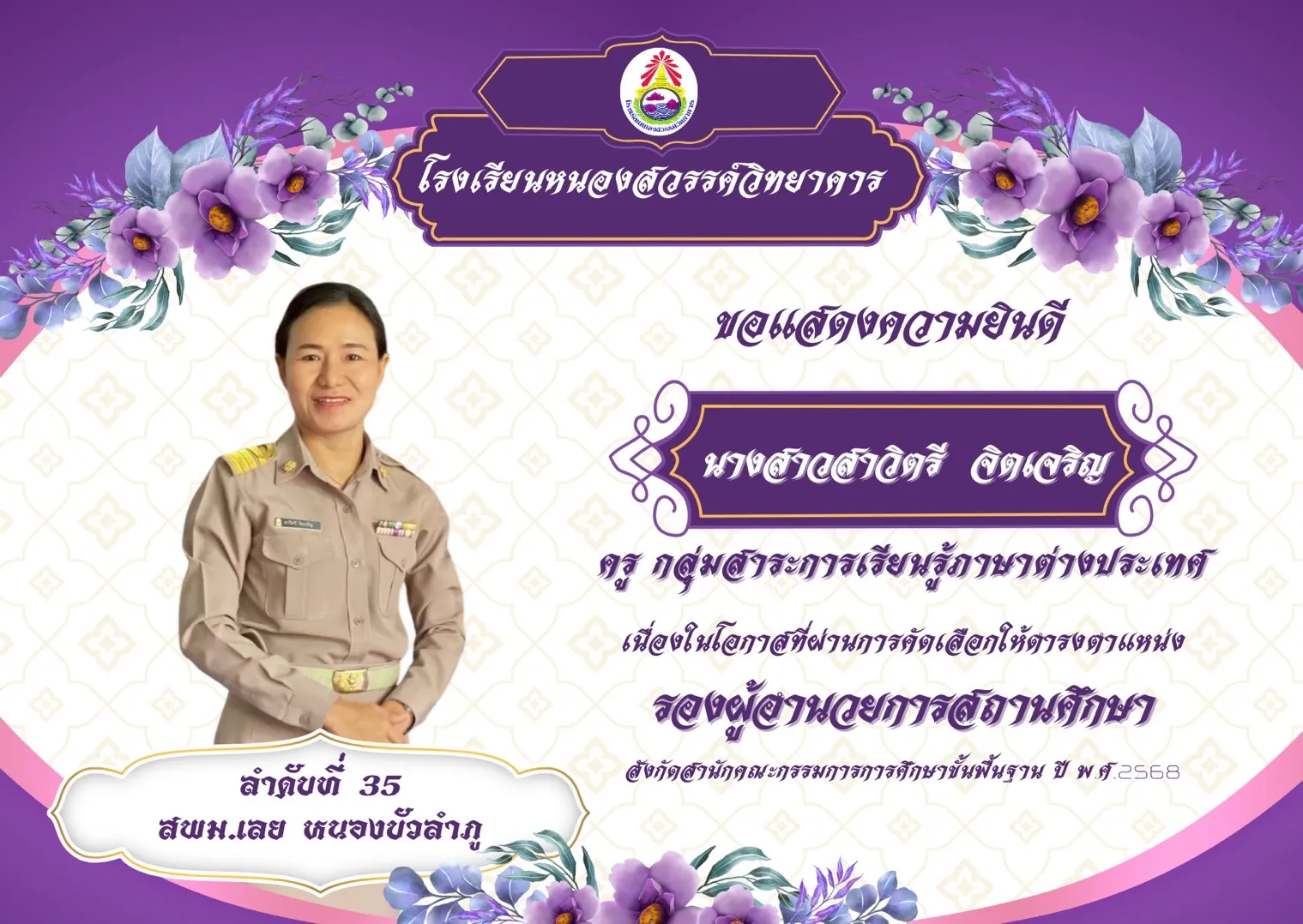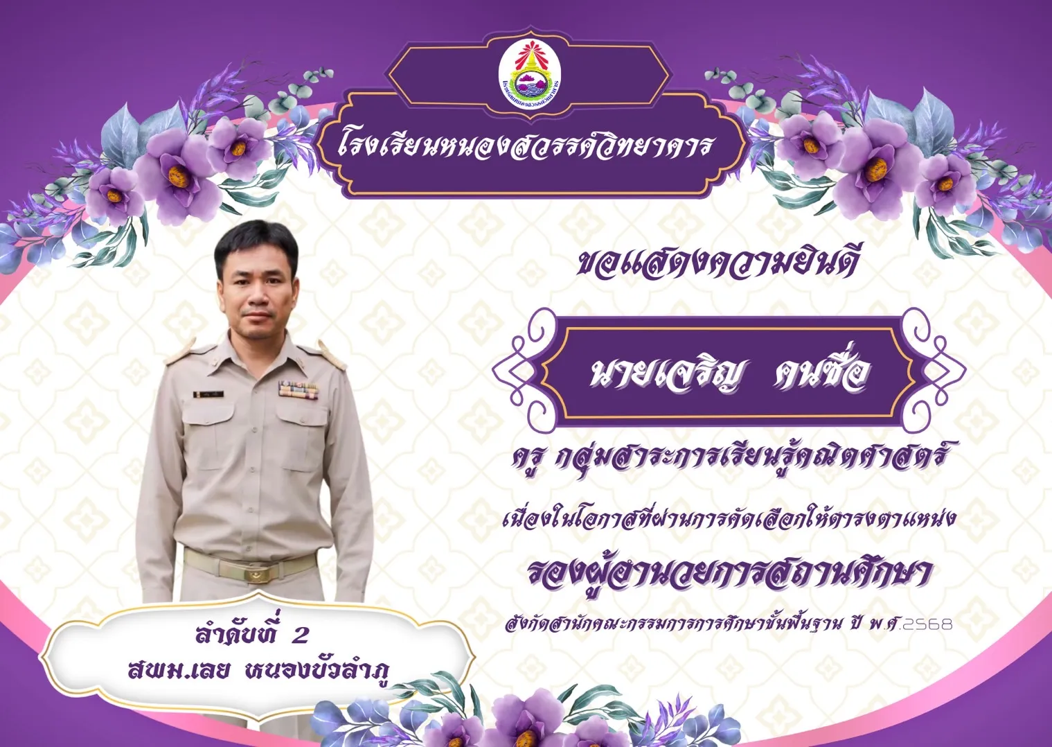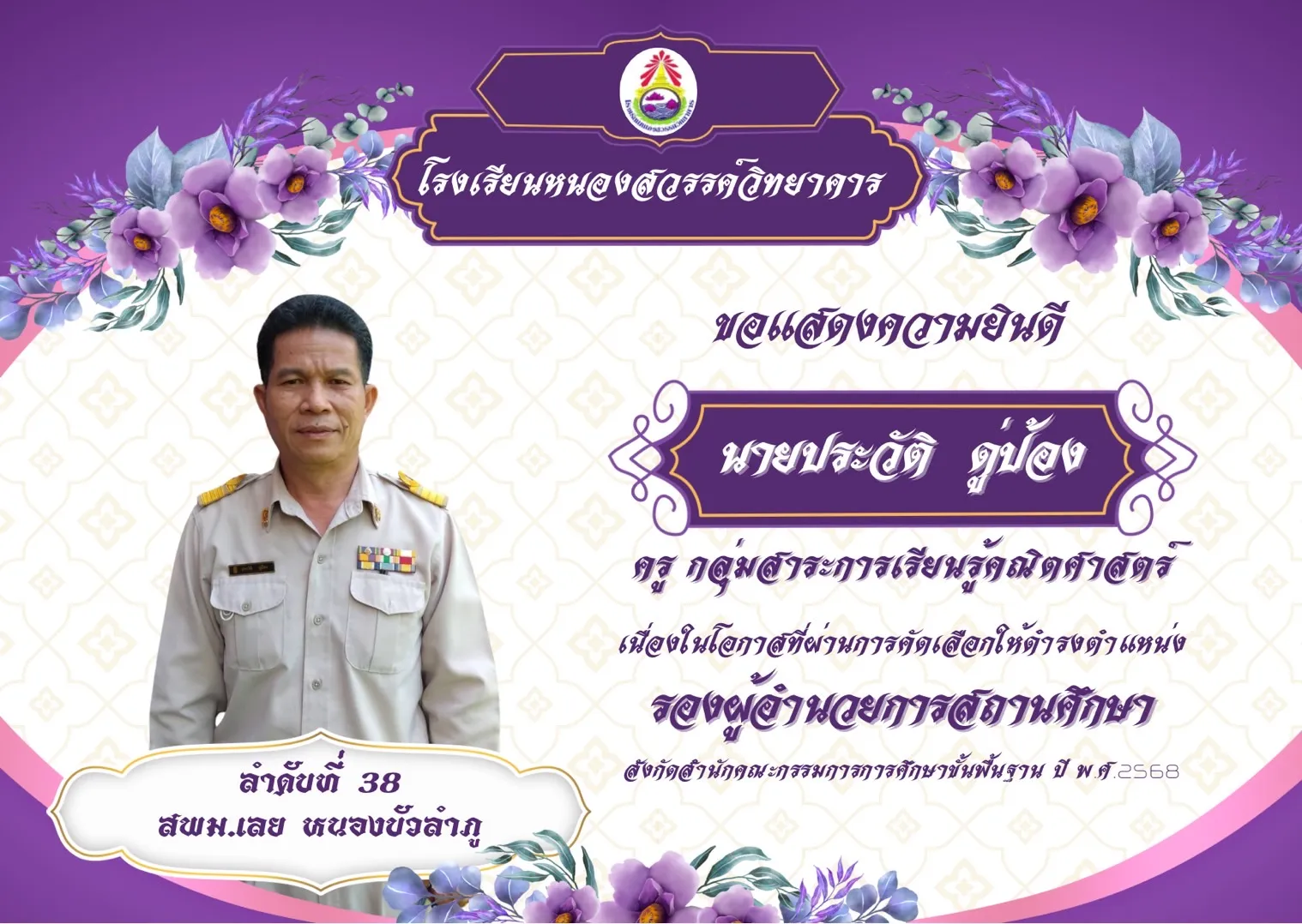 ขอแสดงความยินดีกับคณะครู เนื่องในโอกาสที่ผ่านการคัดเลือกให้ดำรงตำแน่ง รองผู้อำนวยการสถานศึกษา สำนักงานเขตพื้นที่การศึกษามัธยมศึกษาเลย หนองบัวลำภู