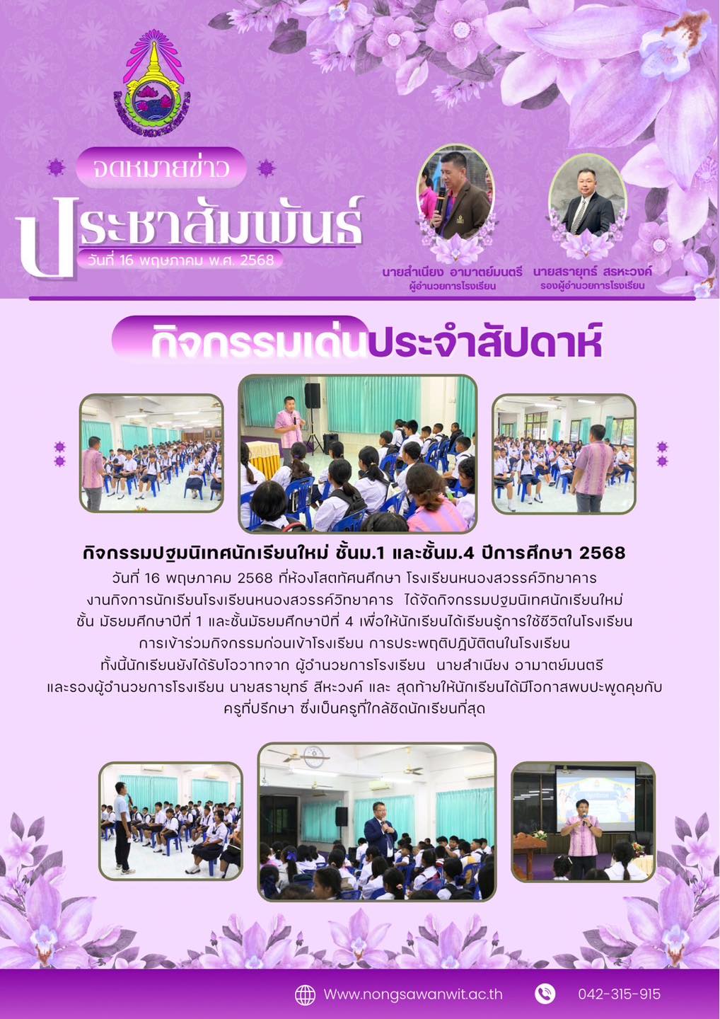 กิจกรรมปฐมนิเทศนักเรียนใหม่ ชั้นม.1 และชั้นม.4 ปีการศึกษา 2568