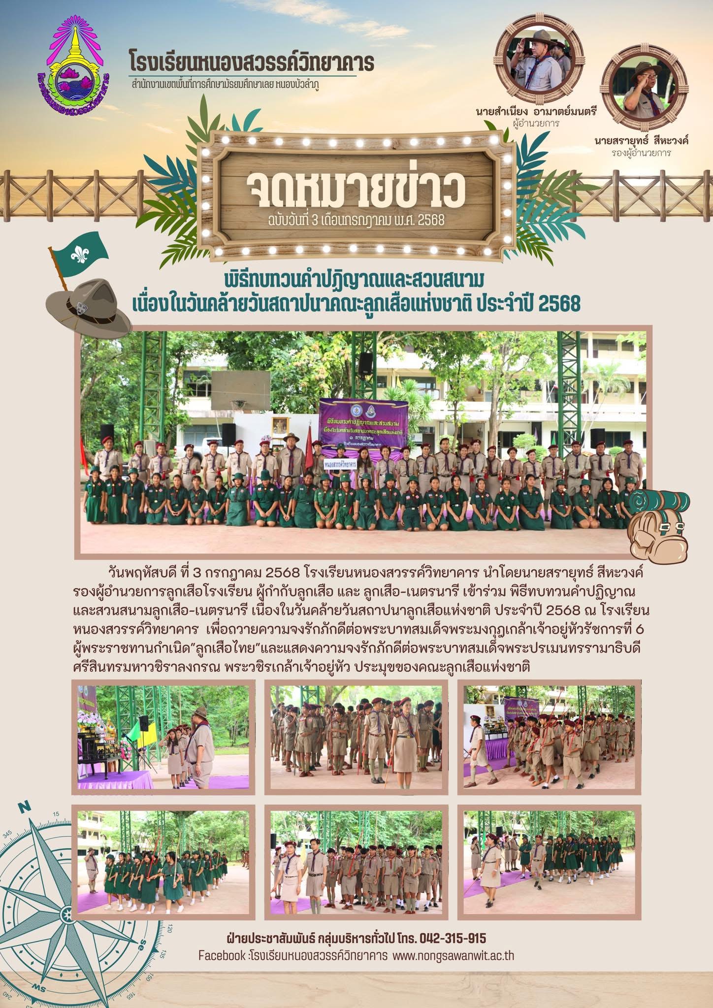 พิธีทบทวนคำปฏิญาณและสวนสนาม เนื่องในวันคล้ายวันสถาปนาคณะลูกเสือแห่งชาติ ประจำปี 2568