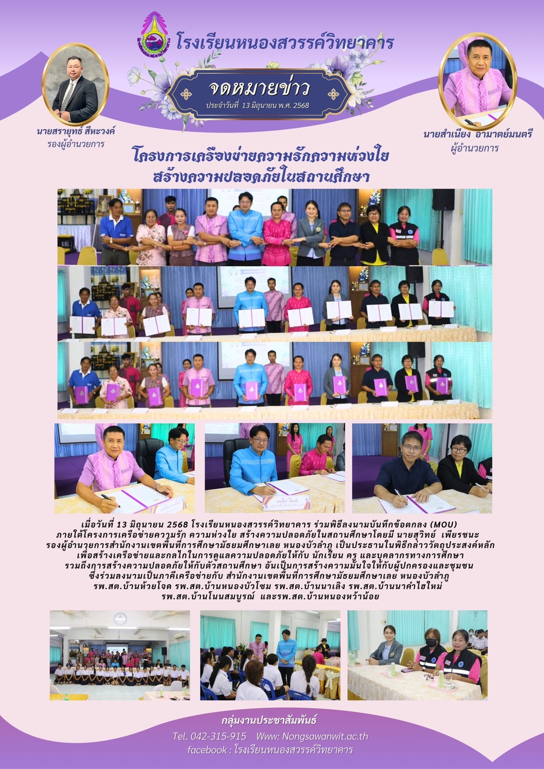 ลงนาม MOU โครงการเครื่องข่ายความรักความช่วงใยสร้างความปลอดภัยในสถานศึกษา