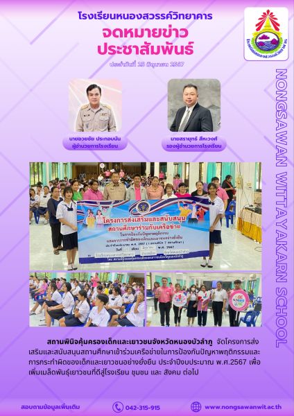 โครงการส่งเสริมและสนับสนุนสถานศึกษาเข้าร่วมเครือข่ายในการป้องกันพฤติกรรมและการกระทำผิดโครงการส่งเสริมและสนับสนุนสถานศึกษาเข้าร่วมเครือข่ายในการป้องกันพฤติกรรมและการกระทำผิดของเด็กและเยาวชน