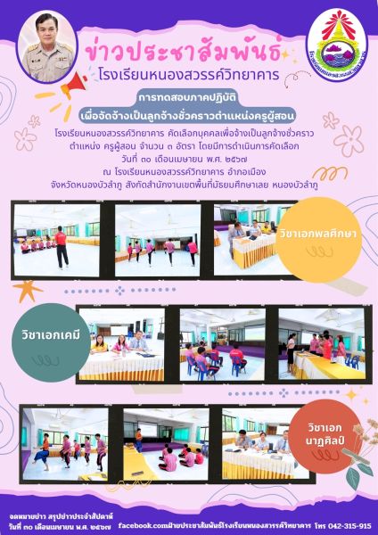 ประกาศโรงเรียนหนองสวรรค์วิทยาคาร เรื่อง รายชื่อผู้ผ่านการคัดเลือกบุคคลเพื่อจ้างเป็นลูกจ้างชั่วคราว ตำแหน่ง ครูผู้สอน